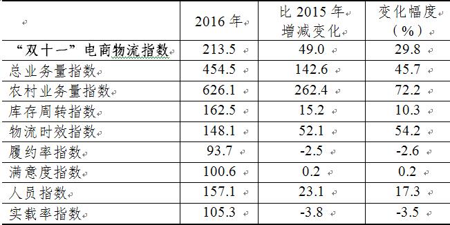 中國(guó)物流與采購(gòu)聯(lián)合會(huì)與京東集團(tuán)聯(lián)合調(diào)查的2016年“雙十一”中國(guó)電商物流指數(shù)為213.5點(diǎn),比去年“雙十一”期間增加49點(diǎn),增長(zhǎng)29.8%。