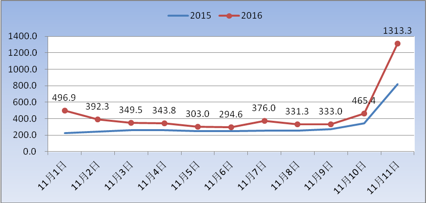 圖表 1 “雙十一”電商物流指數(shù)與去年同期比較