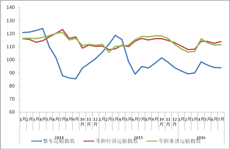 進(jìn)入7月,公路物流需求總體平穩(wěn)。一方面,工業(yè)物流需求增長總體略有加快,其中傳統(tǒng)產(chǎn)業(yè)繼續(xù)調(diào)整,高耗能行業(yè)等傳統(tǒng)產(chǎn)業(yè)物流需求持續(xù)減緩,整車物流需求隨之有所放緩,7月整車指數(shù)為94.0點(diǎn),比上月回落0.1%,比上年同期下降0.9%;另一方面,消費(fèi)品物流需求穩(wěn)中有好,特別是食品、服裝等日用品類物流需求加快增長,受此影響零擔(dān)物流需求特別是零擔(dān)輕貨需求增長較快,7月零擔(dān)輕貨指數(shù)為114.0點(diǎn),比上月回升1.1%;零擔(dān)重貨指數(shù)為111.6點(diǎn),比上月回升0.2%。