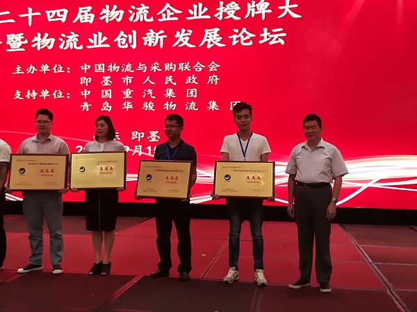 9月15日,“物流企業(yè)授牌大會暨物流業(yè)創(chuàng)新發(fā)展論壇”在山東省即墨市隆重召開,參加本次大會的有來自全國獲得A級物流企業(yè)資質(zhì)、擔保存貨管理及質(zhì)押監(jiān)管企業(yè)資質(zhì)和星級冷鏈物流企業(yè)資質(zhì)的近400家物流企業(yè)代表,40多家地方物流行業(yè)協(xié)會代表、即墨市各政府機關代表以及其他地方物流主管部門負責人合計600余人出席了大會。