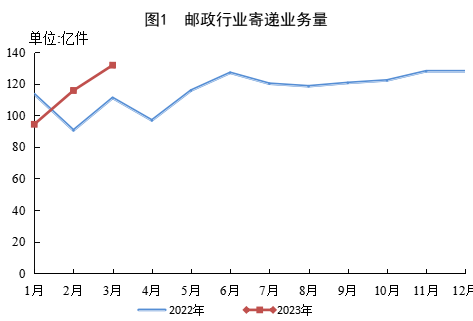 3月份,郵政行業(yè)寄遞業(yè)務(wù)量完成131.7億件,同比增長18.7%。其中,快遞業(yè)務(wù)量完成104.8億件,同比增長22.7%;郵政集團(tuán)寄遞業(yè)務(wù)量完成26.8億件,同比增長5.1%。