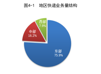 一季度,東、中、西部地區(qū)快遞業(yè)務(wù)量比重分別為75.9%、16.2%和7.9%,業(yè)務(wù)收入比重分別為76.1%、14.1%和9.8%。與去年同期相比,東部地區(qū)快遞業(yè)務(wù)量比重下降1.6個百分點,快遞業(yè)務(wù)收入比重下降1.2個百分點;中部地區(qū)快遞業(yè)務(wù)量比重上升1.0個百分點,快遞業(yè)務(wù)收入比重上升0.7個百分點;西部地區(qū)快遞業(yè)務(wù)量比重上升0.6個百分點,快遞業(yè)務(wù)收入比重上升0.5個百分點。