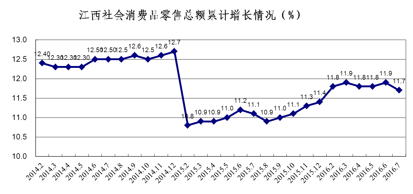 從結(jié)構(gòu)來(lái)看,升級(jí)類、新業(yè)態(tài)消費(fèi)的加快增長(zhǎng)支撐全省消費(fèi)的穩(wěn)步增長(zhǎng):一是升級(jí)類消費(fèi)快速增長(zhǎng)。1-7月,全省限額以上單位體育娛樂(lè)用品、建筑及裝潢材料類、通訊器材類、中西藥品類、家用電器和音像器材類零售額分別增長(zhǎng)30.1%、24.2%、24.1%、21%和21.4%,增速高出全省限額以上消費(fèi)增速17.7個(gè)、11.8個(gè)、11.7個(gè)、8.6個(gè)、9.0個(gè)百分點(diǎn)。二是網(wǎng)絡(luò)購(gòu)物快速發(fā)展。1-7月,全省限額以上單位通過(guò)公共網(wǎng)絡(luò)實(shí)現(xiàn)零售額增長(zhǎng)30.8%,高出社會(huì)消費(fèi)品零售總額增速19.1個(gè)百分點(diǎn)。從預(yù)期來(lái)看,消費(fèi)發(fā)展后勁依然不足:一是升級(jí)類消費(fèi)增速有所放緩。1-7月,全省限額以上單位體育娛樂(lè)用品、建筑及裝潢材料類、通訊器材類、中西藥品類零售額增速分別較上半年放緩2.4個(gè)、4.0個(gè)、2.7個(gè)1.6個(gè)百分點(diǎn)。二是城鄉(xiāng)居民收入水平低,且經(jīng)濟(jì)下行壓力加重居民收入增速放緩預(yù)期,影響消費(fèi)者信心。三是網(wǎng)絡(luò)購(gòu)物對(duì)本地消費(fèi)市場(chǎng)沖擊。由于江西尚未形成品牌好、規(guī)模影響大的網(wǎng)購(gòu)平臺(tái),網(wǎng)絡(luò)購(gòu)物的供給沖擊將繼續(xù)分流省內(nèi)購(gòu)買力,影響本地消費(fèi)市場(chǎng)發(fā)展。綜合來(lái)看,預(yù)計(jì)未來(lái)消費(fèi)將保持一定剛性的穩(wěn)步增長(zhǎng),但難以在短期內(nèi)有快速提高。