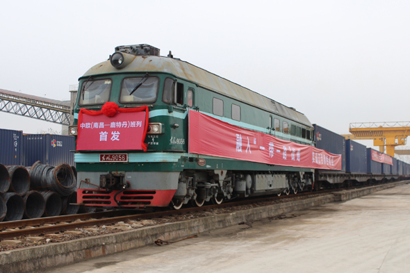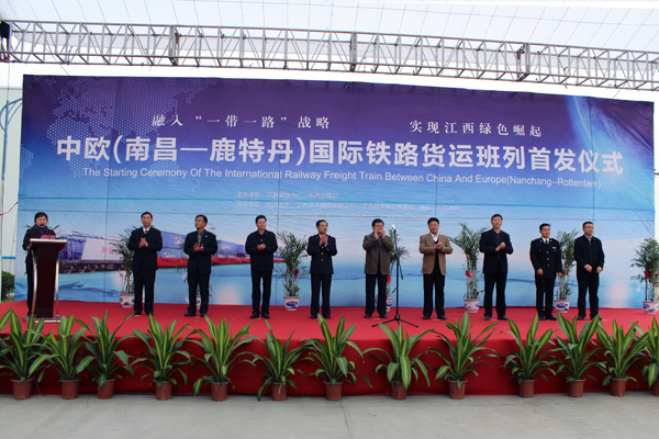 贛歐(南昌-鹿特丹)國際鐵路貨運(yùn)首趟班列將經(jīng)滿洲里口岸出境,途經(jīng)俄羅斯、白俄羅斯、波蘭、德國到達(dá)終點(diǎn)荷蘭鹿特丹,全程12000余公里,運(yùn)行時間約17天。該班列將比海運(yùn)節(jié)省28天左右的運(yùn)輸時間,是中國內(nèi)陸通往中亞和歐洲的又一條高效、快捷、安全的國際鐵路貨運(yùn)通道,是我省主動融入國家“一帶一路”戰(zhàn)略,不斷深化改革創(chuàng)新,全面提升開放水平的重要舉措,標(biāo)志著江西在“發(fā)展升級、小康提速、綠色崛起、實(shí)干興贛”道路上又邁出了堅實(shí)而重要的步伐,對于進(jìn)一步增強(qiáng)江西與各國的區(qū)域合作和人文交流,拓寬外貿(mào)物流渠道,促進(jìn)我省外貿(mào)規(guī)模擴(kuò)大和現(xiàn)代物流體系建設(shè),帶動優(yōu)勢產(chǎn)業(yè)加快發(fā)展,有效促進(jìn)太陽能光伏、電子電器、品牌服裝等戰(zhàn)略新興產(chǎn)業(yè)和傳統(tǒng)產(chǎn)業(yè)轉(zhuǎn)型升級具有重要的意義。