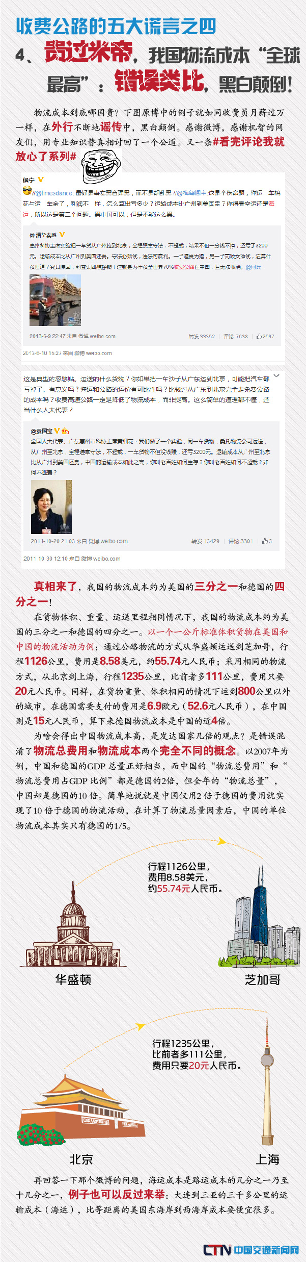 日前,交通運(yùn)輸部發(fā)布2016年全國收費(fèi)公路統(tǒng)計(jì)公報(bào),引發(fā)公眾廣泛關(guān)注。有人肯定交通運(yùn)輸主管部門公開曬賬單,推進(jìn)政府信息公開的做法,也有人質(zhì)疑賬目不夠明細(xì),和公眾直觀感受差距較大,或質(zhì)疑收費(fèi)公路政策。然而,無論主流媒體或普通大眾在討論收費(fèi)公路政策時(shí),基于的事實(shí)往往是多年來由于各種原因產(chǎn)生的錯(cuò)誤信息乃至謊言。